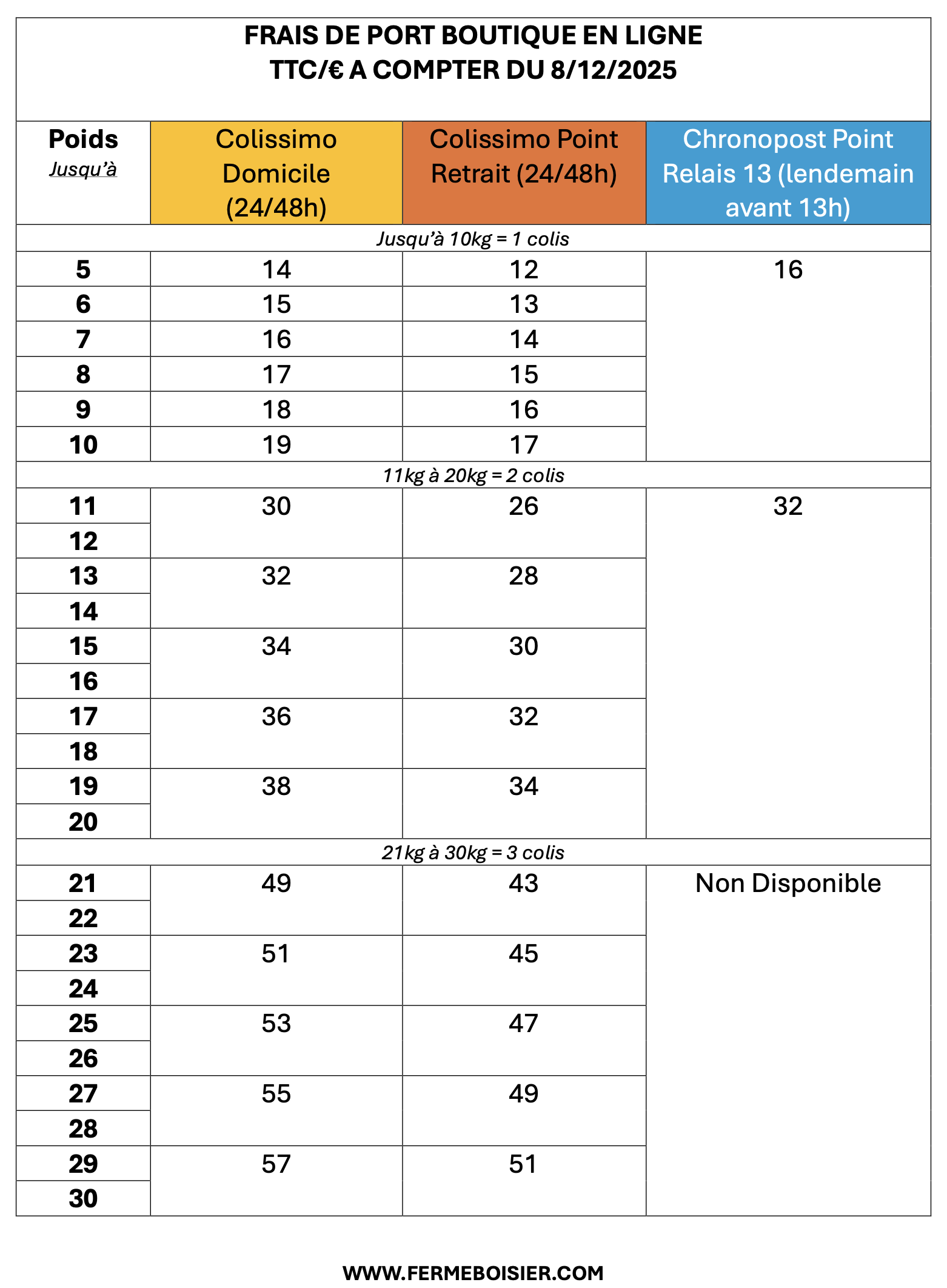 Pour une quantité supérieure à 30kg ou un envoi Europe merci de nous contacter directement.